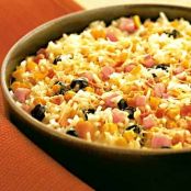 Arroz ao Forno Rápido com peito de peru, queijo parmesão e milho!!! Divino!