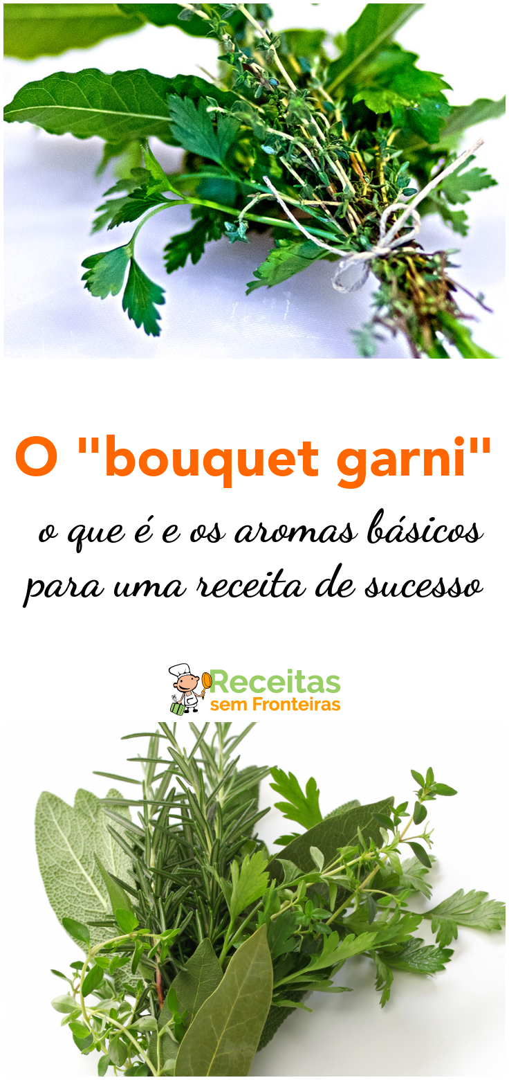 O buquet garni é, na verdade, um amarrado de ervas aromáticas que será colocado para cozinhar e será retirado ao final do cozimento. Ele é usado somente no cozimento feito em água ou outros líquidos porque a extração dos componentes aromáticos acontece por decocção.*