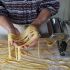 - Em tábua, divida e espalhe o espaguete, formando tranças.