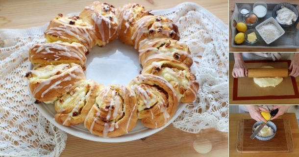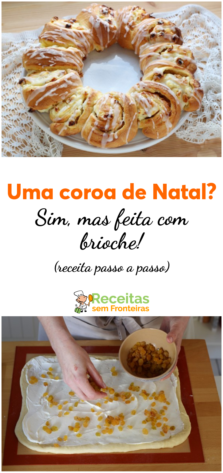 Para se colocar totalmente no espírito de festas de fim de ano, uma coroa de Natal feita com brioche, como sobremesa ou lanche.