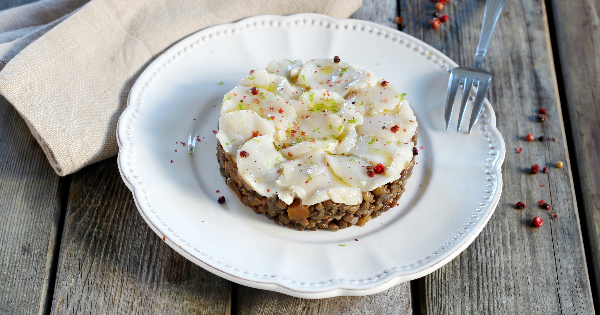 Carpaccio de vieiras com lentilhas verdes: beleza e sabor na sua mesa