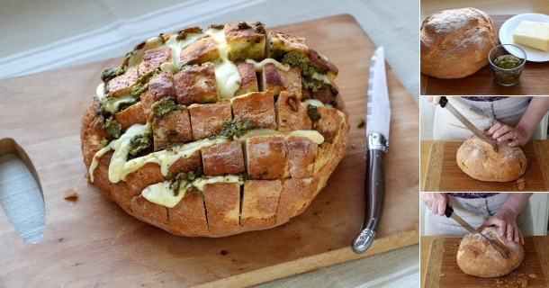 Este pão é delicioso e divertido para ser servido num aperitivo, recheado com pesto e Cantal. Vamos lhe mostrar como fazê-lo e temos certeza de que você vai experimentar e amar...
