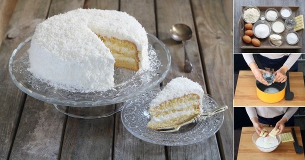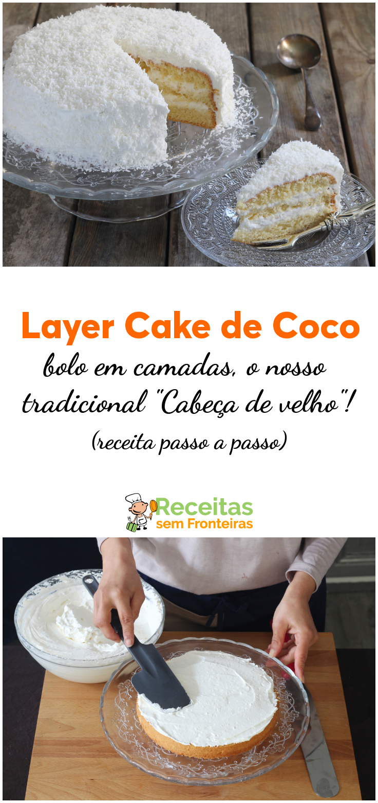 O Layer Cake é o nome do bolo em camadas. Neste caso, com recheio e cobertura de coco, para nós é apenas o tradicional "Cabeça de velho"!