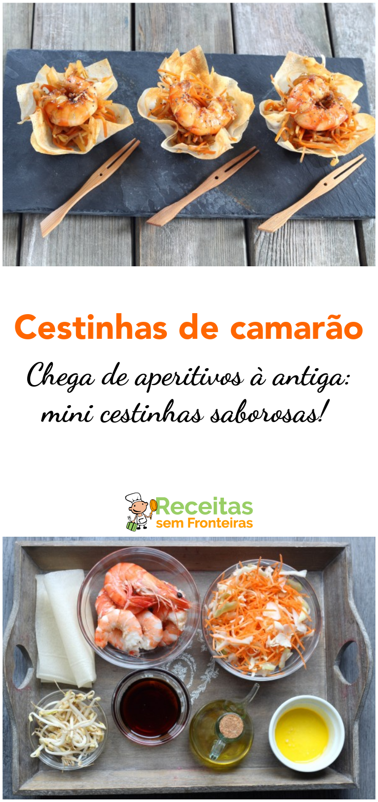 Troque os antigos salgadinhos para aperitivo por estas crocantes e deliciosas cestinhas recheadas com legumes e camarão. Inove sempre!