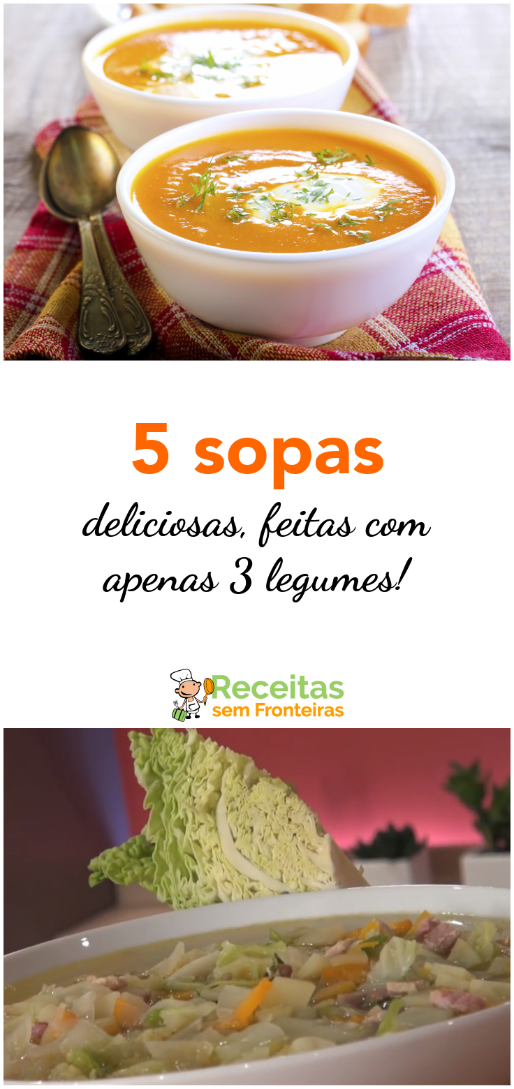 Com o frio é hora de pensarmos nas sopas bem quentinhas e saborosas. Estas sopas cremosas, feitas com apenas 3 legumes devem ser provadas!