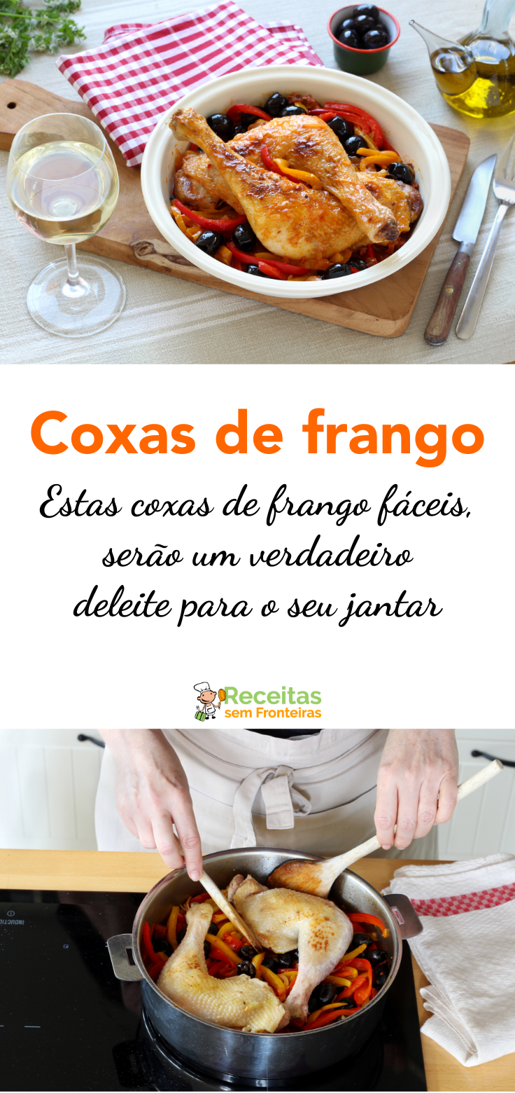 Estas coxas de frango em leito de chorizo, pimentões e azeitonas tem um sabor delicioso, também é saudável e perfeito para um bom jantar com amigos...