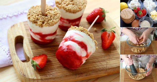 Receita passo a passo: Cheesecake de morango tipo picolé!