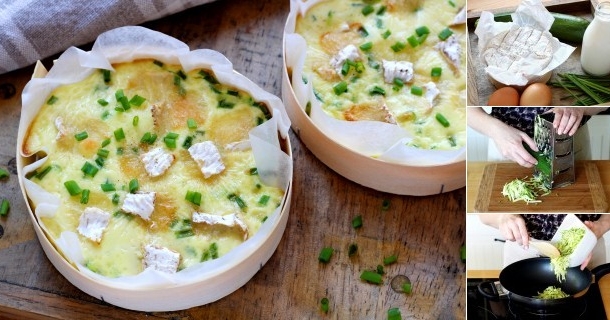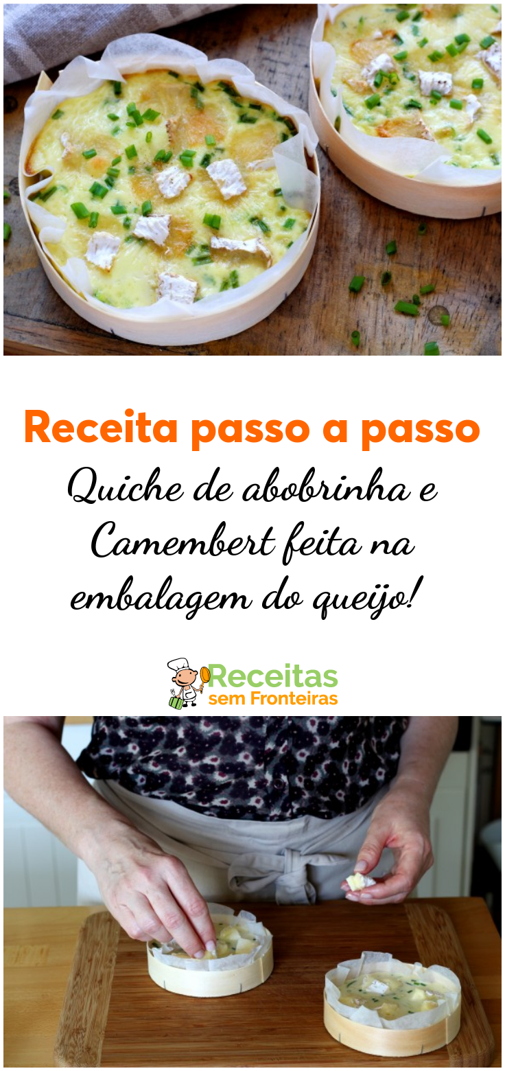 Quiche de abobrinha e Camembert, sem massa, feita na própria embalagem do queijo! Receita passo a passo