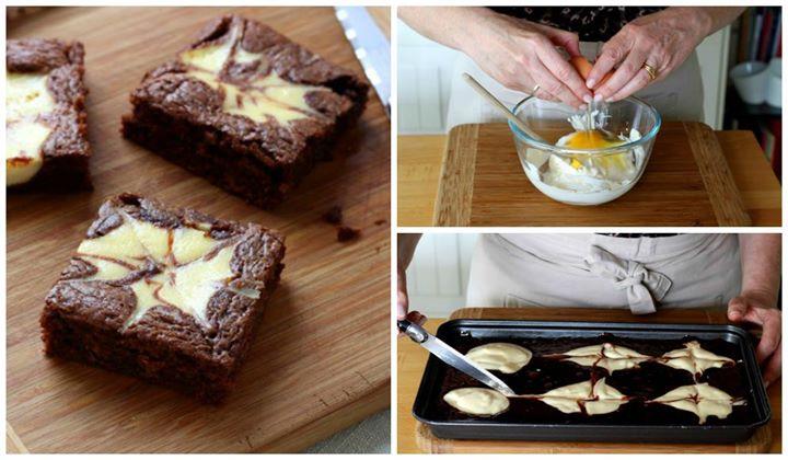 Receita passo a passo: brownie marmorizado tipo cheesecake