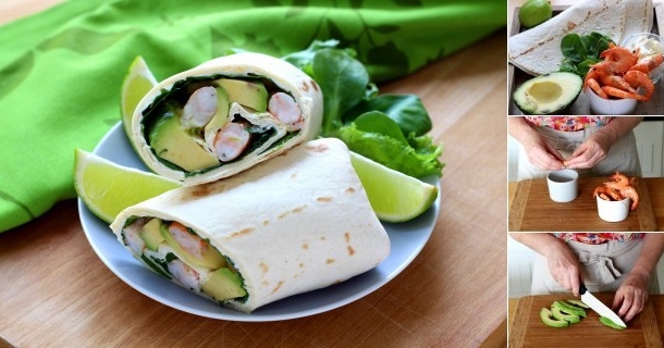 Receita passo a passo: como fazer wraps com abacate, homus e camarões?