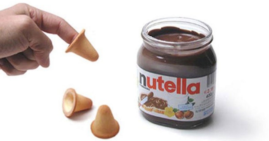 Bem, ninguém vai te recriminar, é gostoso mesmo, mas você expõe a Nutella que sobra no pote, à milhões de bactérias... fora a sujeira que faz! Nos últimos dias, uma invenção estranha circula como fogo na internet: ponteiras de biscoito para colocar nos dedos antes de mergulhá-lo no pote! A invenção é atribuída ao designer italiano Paolo Ulian.