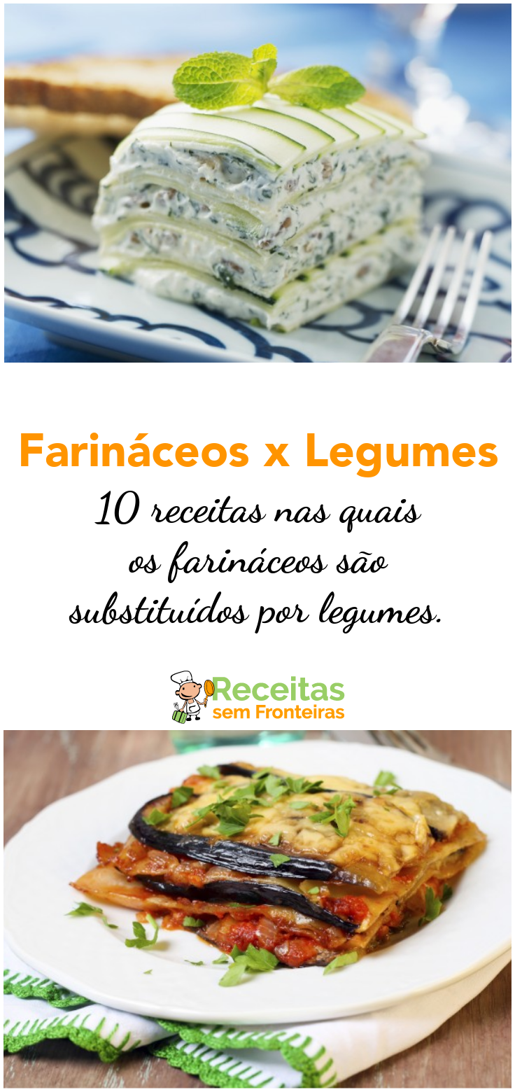 As receitas com massas, como pizzas, lasanhas, etc. podem ser perfeitamente feitas com legumes sem perder suas características e sabores.