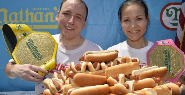 É simples... basta comer a maior quantidade possível de cachorro quente em 12 minutos. O concurso acontece nos Estados Unidos, em Brooklyn e o japonês Takeru "Tsunami" Kobayashi detém o recorde: 53 cachorros quentes em 12 minutos... alguém faz melhor?