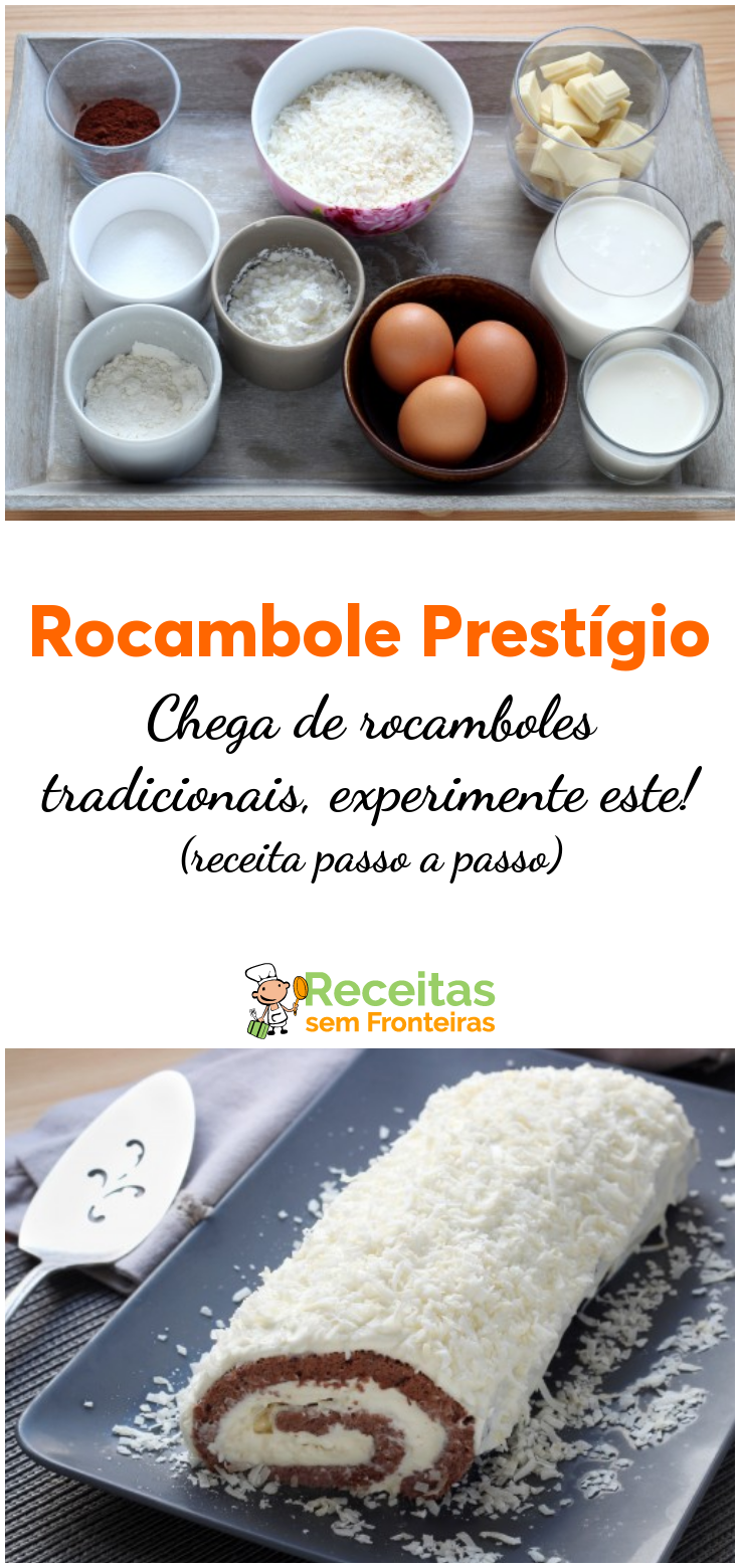 Rocambole de Prestígio é feito com massa leve, pouco calórica e anda mais saborosa!
