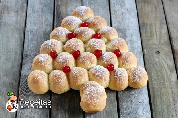 Um pinheiro feito com massa de brioche, para uma mesa bem natalina, é uma ideia perfeita e fácil de fazer para o lanche de Natal.