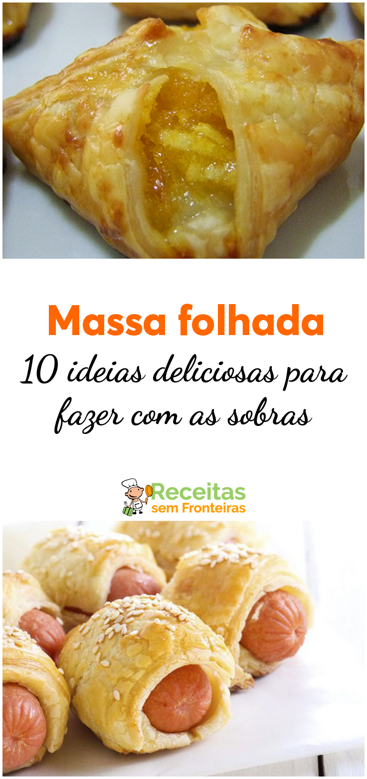 Então, entre muitas outras, vamos pensar em algumas ideias para aproveitar as sobrinhas de massa folhada. Vamos lhe sugerir 10 possibilidades, mas você também pode criar muitas outras... O importante é não jogar fora o que pode ser aproveitado !!!