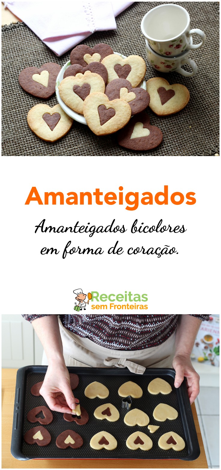 Amanteigados bicolores em forma de coração. Receita passo a passo