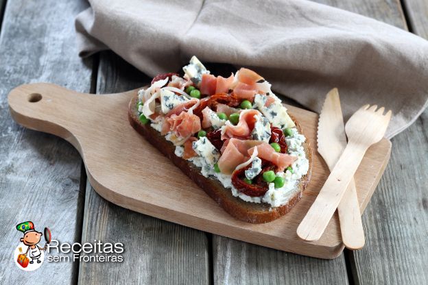 Bruschetta de presunto e gorgonzola, uma luva para o lanche de hoje!