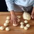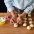 - Divida a massa de pizza em bolinhas de igual tamanho, de forma a caber dentro de casa uma delas, uma bolinha de mussarela de búfala.