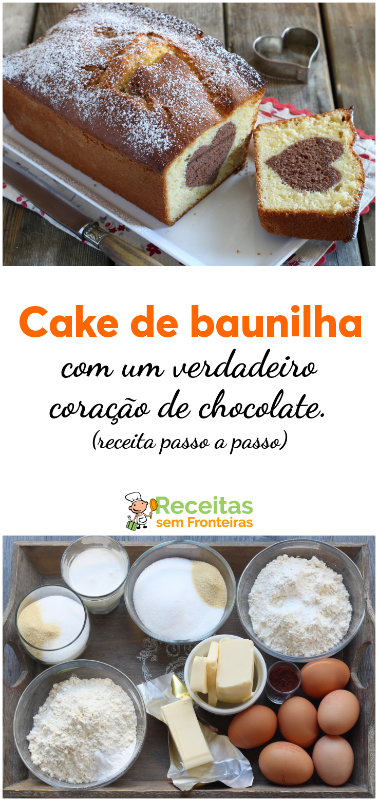 Cake de baunilha e seu verdadeiro coração de chocolate. Receita passo a passo