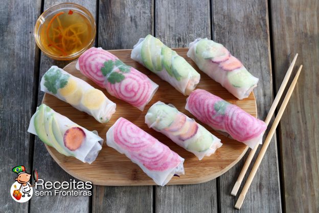 Rolinhos de primavera vegetarianos, lindos e saborosos! Receita passo a passo