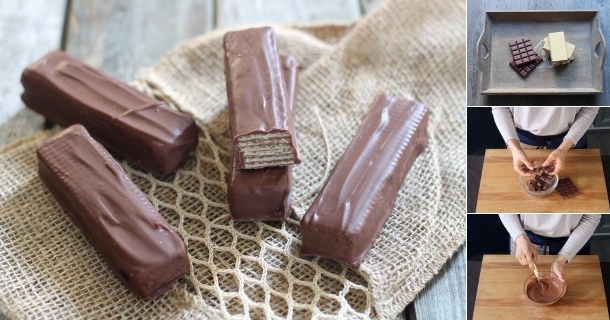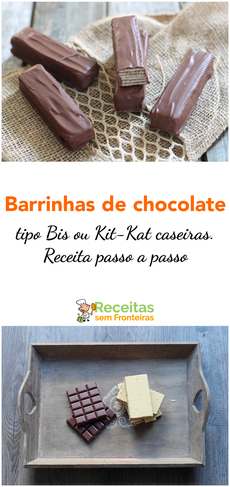 Sabia que você pode fazer em casa barrinhas de chocolate tipo Bis ou Kit Kat? É verdade, elas ficam bem parecidas e bem mais baratas. Experimente!