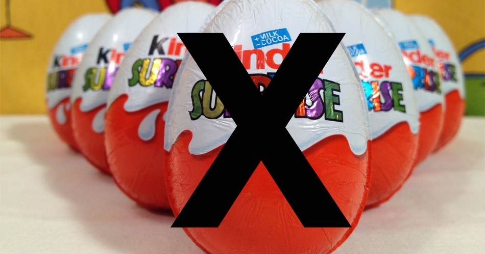 O fabricante de chocolate italiano já tem seu produto mais famoso (lançado em 1972) proibido no mercado dos EUA devido a um regulamento de 1938 que proíbe a associar um alimento à qualquer substância, neste caso, um brinquedo.