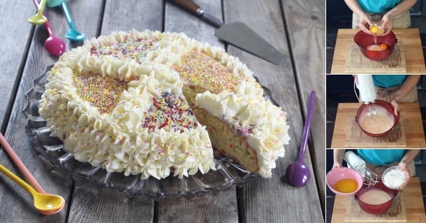 FUNFETTI CAKE, o bolo com confeitos coloridos. Receita passo a passo
