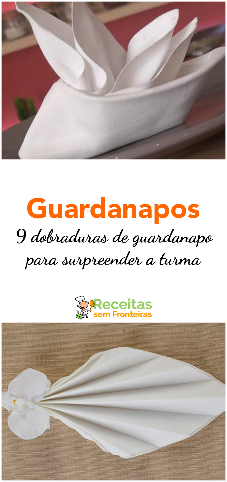 A arte da dobradura de guardanapos não é somente para profissionais. Francamente, é fácil e acessível a todos, o que é necessário é um pouco de paciência. Cabe a você escolher a forma que lhe convem e agrada e ... hop ao trabalho! É o algo a mais que fará de você um perfeito anfitrião. Para os almoços de domingo ou as refeições de festas, nos divertimos ao fazer dobraduras de guardanapos. E se você tem uma dobradura, mande o passo a passo para nós que ela será publicada!