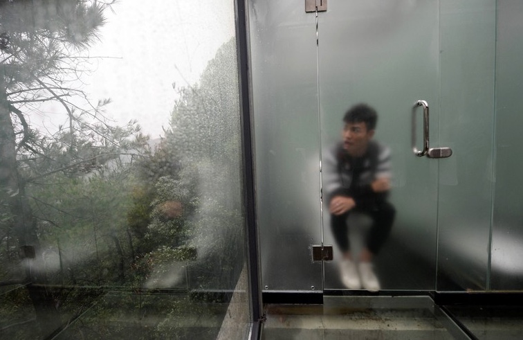 Um banheiro transparente, isso mesmo, foi construído no meio de uma área de vegetação, para qualquer um que queira usar.