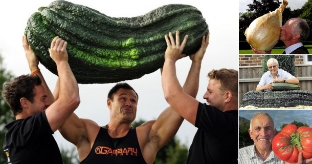 Mesmo muitos homens não conseguiriam levantar esta abóbora gigantesca, que se aproxima da tonelada. Já imaginou fazer buracos nela para festejar Halloween? Precisaria de instrumentos e máquinas especiais...