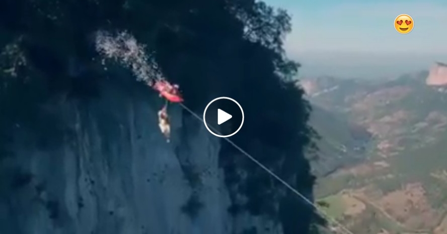 Olhem o que inventaram: esticam um cabo de aço de uma montanha até a outra e, sob ele, fazem, desde a travessia sobre uma prancha de surf com propulsor até a maior palhaçada, para, depois, saltar das alturas, em meio a uma paisagem fantástica. Confira no mp4 abaixo.
