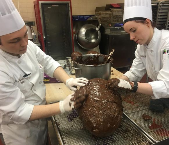 Alunos de gastronomia criam grande rocha cristalina de chocolate