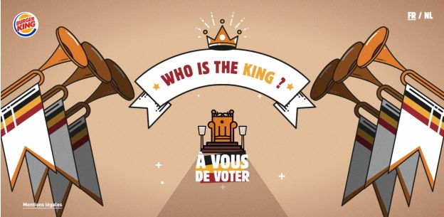 Os visitantes devem, então, votar no King Philippe (atual da Bélgica) ou no Burger King. Se você optar por não cometer traição e tentar votar no rei Philippe, o site tentará persuadi-lo não menos que duas vezes antes de, relutantemente, deixar você clicar no botão "sim" (que se afasta do seu cursor por um tempo).