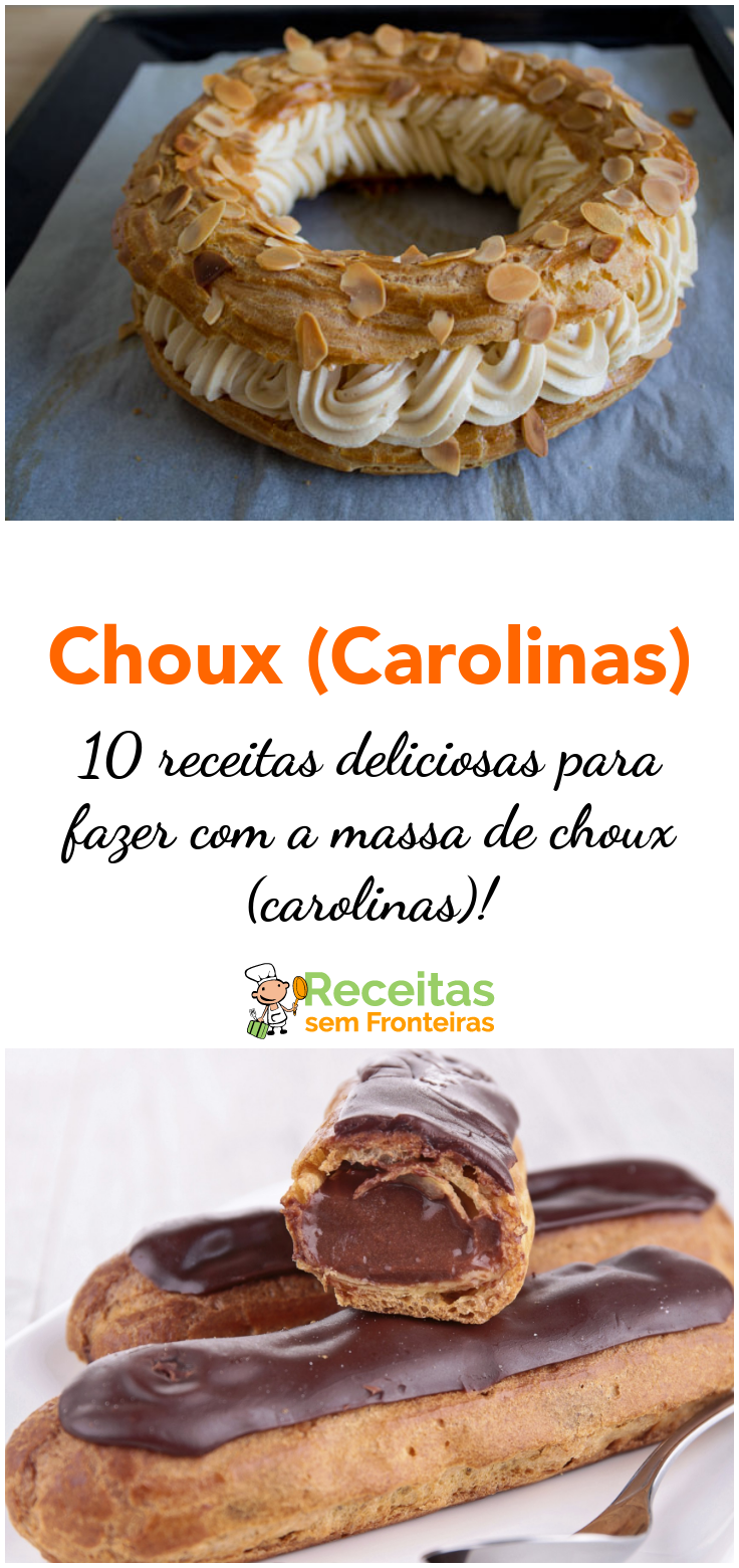 Choux, carolinas, bombas são nomes que indicam aquelas delicias feitas com a massa super leve, delicada que tem uma variação de receitas incrível!