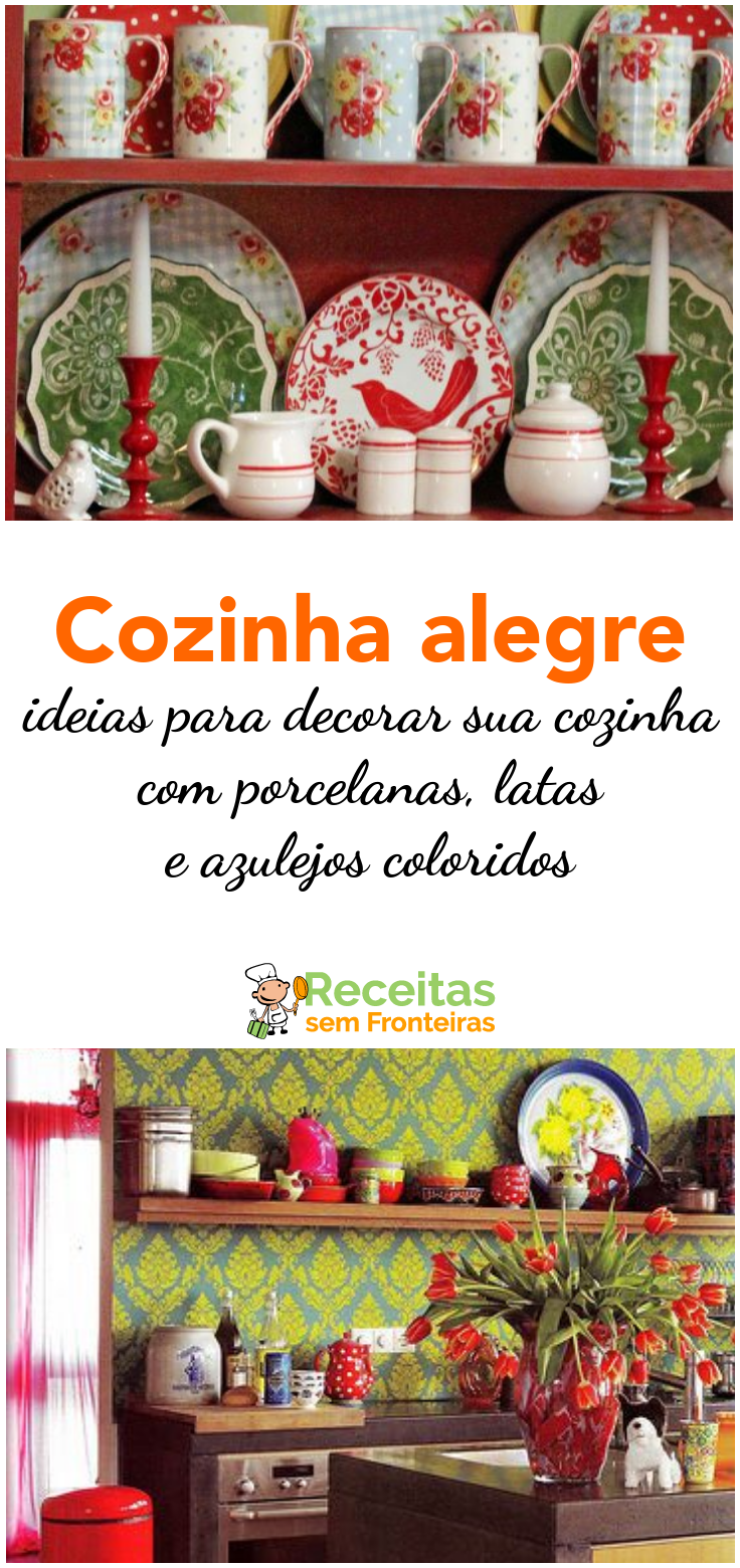Quando o assunto é decoração da cozinha, é tendência a mistura de cores em objetos do seu dia a dia, seja postos à mesa ou guardados no armário aberto ou de vidro. Latas, porcelanas, azulejos, todos coloridos e harmonizados farão da sua cozinha um local agradável e inspirador. E não precisa dar uso prático aos objetos, podem ser apenas decorativos. E, atualmente, podem ser comprados avulsos em lojas de novos ou usados. Aproveite!