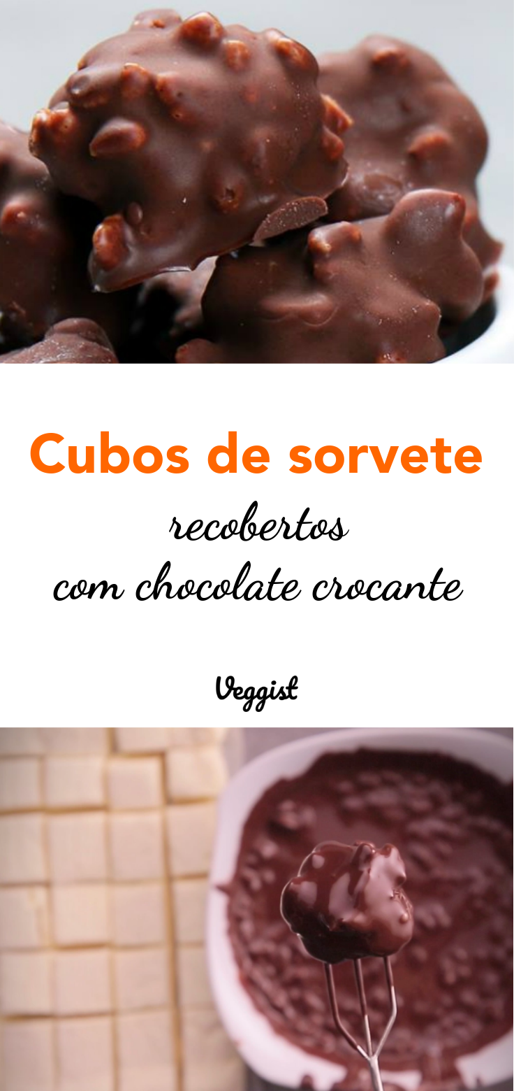 Cubinhos de sorvete, cremosos e com uma cobertura crocante de chocolate, de babar...