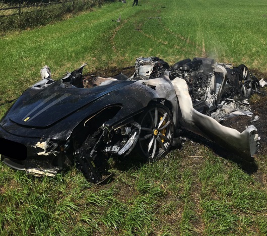 O estrago foi tamanho que não foi possível a identificação do modelo do carro pelos bombeiros. De acordo com a rede de televisão BBC, o motorista respondeu, bastante desapontado, que se tratava de uma Ferrari que fora retirada da loja 1 hora antes do acidente.