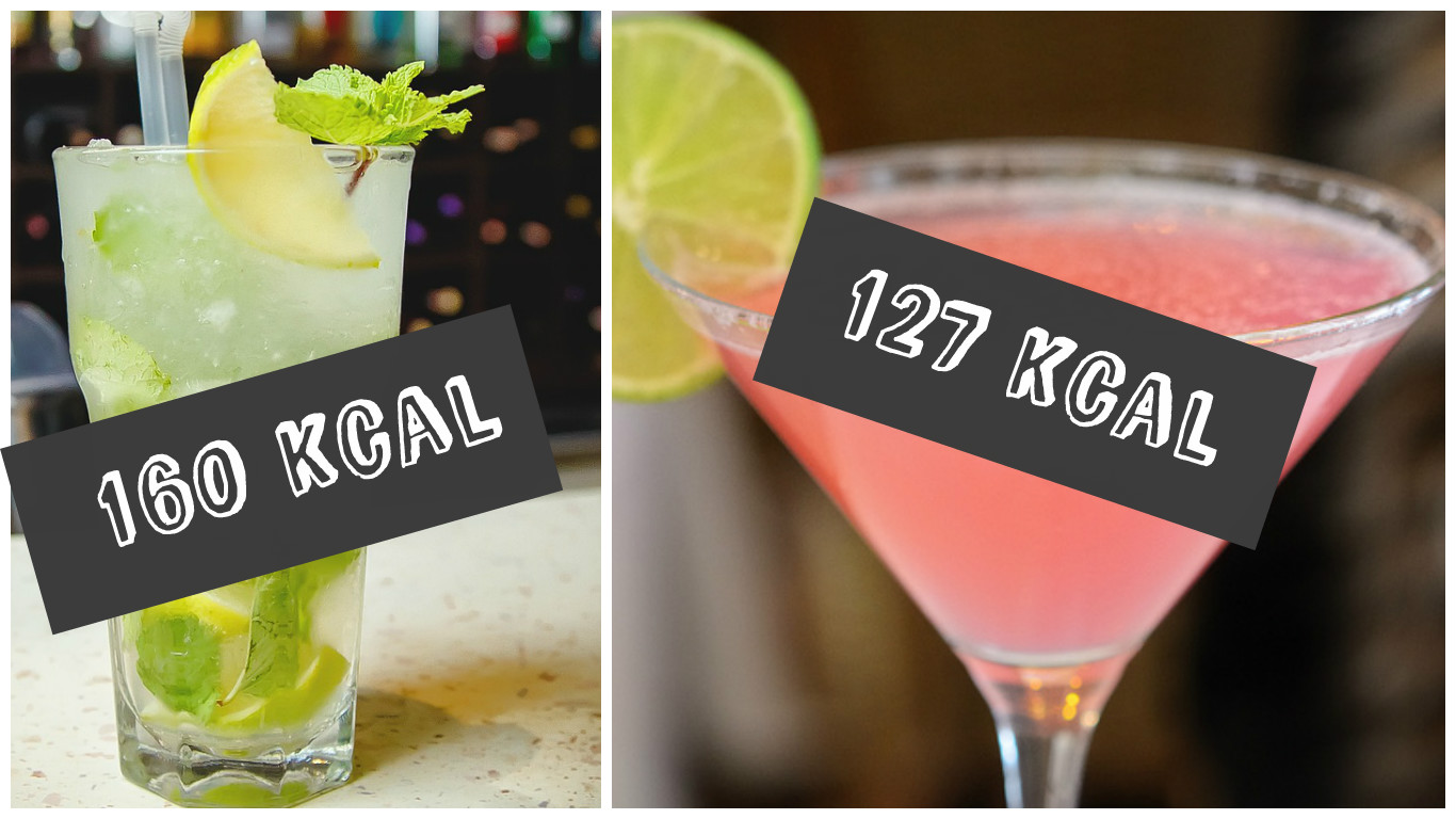 Em comparação com outros coquetéis, o Mojito é relativamente "leve". Um copo contém cerca de 160 calorias: