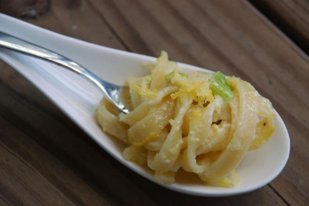 Este é um prato de macarrão prático para acabar com suas sobras de raspas de limão. Se você colocar raspas no molho, pegue de preferência limões não tratados. Se você os tiver, você pode salpicar suas massas com m pouco de parmesão ralado.