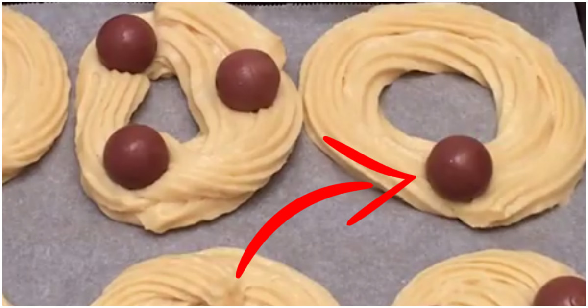 Colocar a massa num saco de confeitar e fazer círculos numa assadeira coberta com papel manteiga. Colocar pedaços de chocolate nos círculos e outro círculo de massa por cima. Colocar no congelador por 4 horas e fritar com bastante óleo ... e prepare-se para o que está por dentro!