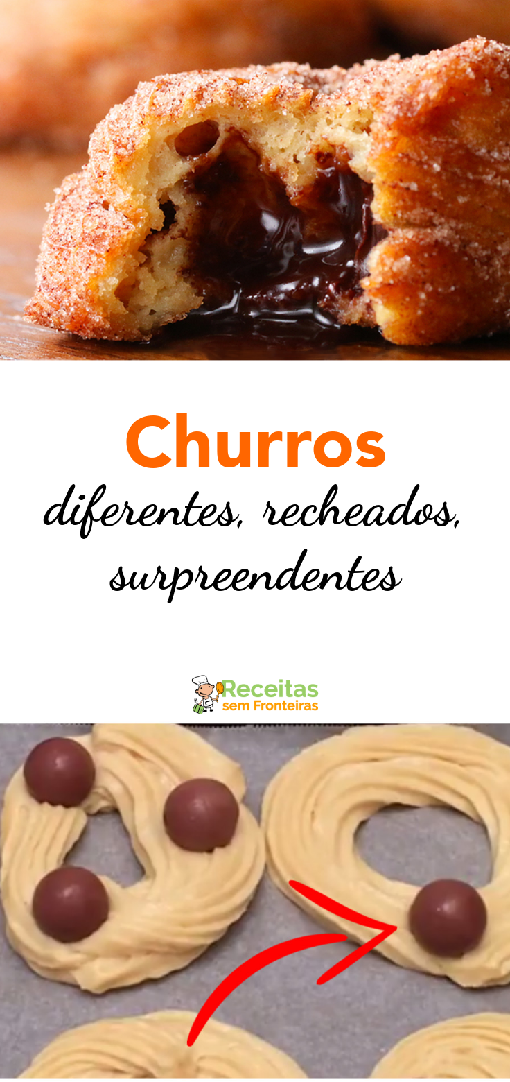 Se você gosta de churros, não vai perder esta receita perfeita! O sabor é o mesmo, mas o recheio é muito mais abundante e você pode variar do jeito que preferir, doce de leite, Nutella, sorvetes de sabores variados... A criatividade é o limite para esta gostosura!