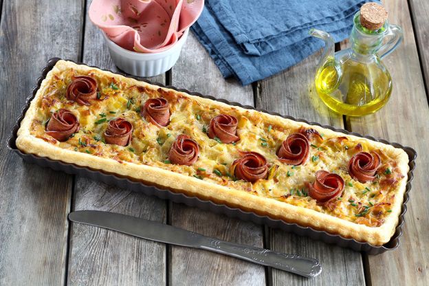 Quiche de Alho Poró com flores de mortadela! Receita passo a passo