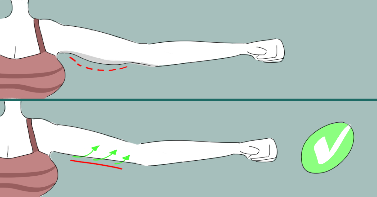 Com os pesos na mão, estenda os braços para frente, mantendo seus braços em linha reta. Traga os antebraços para seus ombros. Mantenha os pesos paralelos ao chão.