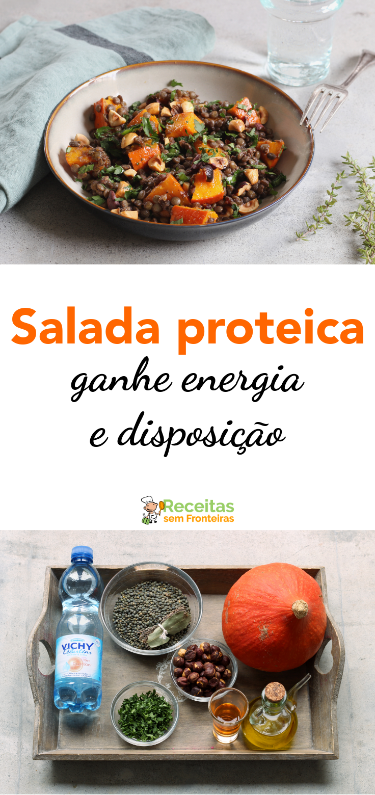 Salada proteica de lentilha com abóbora Hokkaido e avelãs!