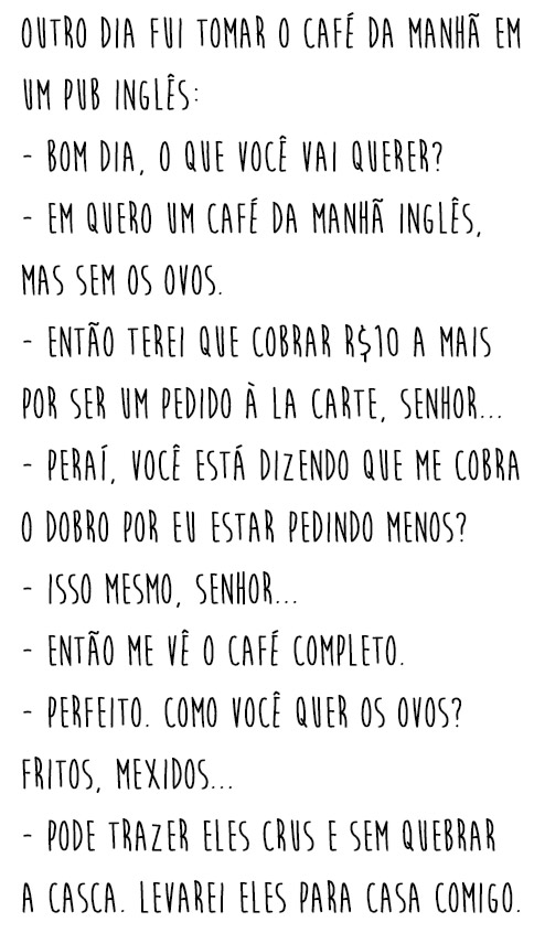 O café do pub inglês! A Redação, 28/10/2014 Receitas sem Fronteiras 15 fãs Compartilhar Facebook Tweetar Pin it! Share on WhatsApp G+1 Outros artigos quentinhos, saídos do forno! Quem ri por último... Frango mal passado Ingredientes diferentes Comentar este artigo
