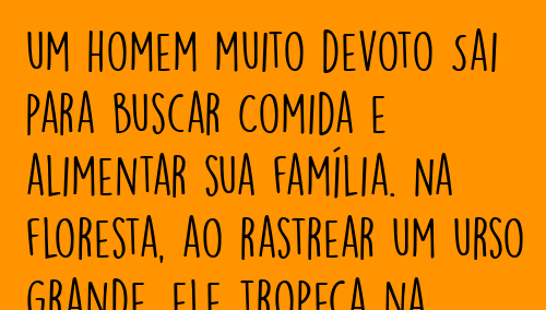 Um homem muito devoto sai para buscar comida e alimentar sua família. Na floresta, ao rastrear um urso grande, ele tropeça na raiz de uma árvore, cai e perde sua arma.
