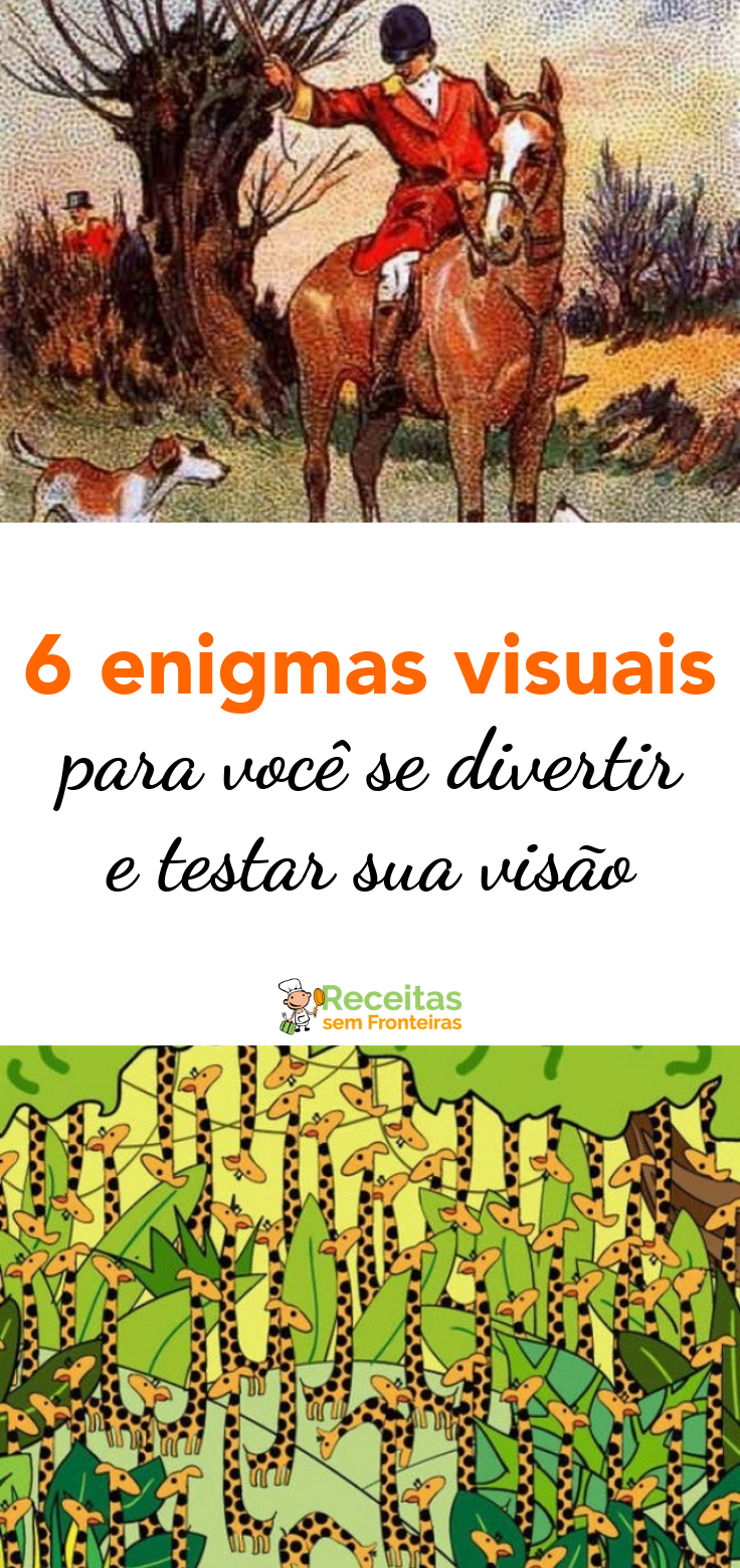 6 ENIGMAS VISUAIS que DESAFIAM sua INTELIGÊNCIA! Porana rosa welerson, 20/02/2018 Receitas sem Fronteiras fãs Compartilhar Facebook Tweetar Pin it! Share on WhatsApp G+1 Somente os mais observadores serão capazes de resolvê-los. 1/12 SEGUINTE... ONDE ESTÁ O CAVALO? Nesta imagem há um cavalo, e nem sequer está escondido ... você consegue vê-lo? Outros artigos quentinhos, saídos do forno! Google Restaurante Epa, que este é meu e ninguém tasca! Querida, o que tem para a janta? Comentar este artigo
