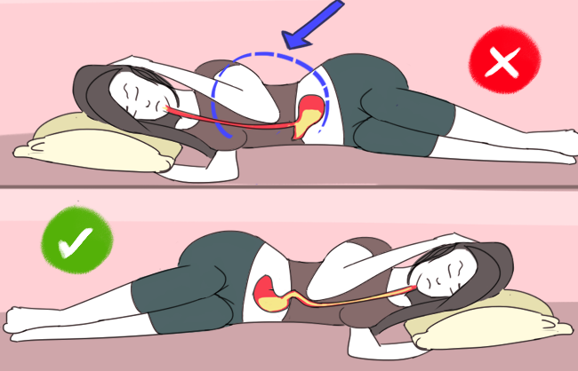 Dormir no lado esquerdo promove a digestão e boa atividade intestinal: o alimento se move mais rápido do intestino delgado para o cólon inferior nesta posição.
