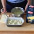 - Ferva água com sal e adicione as folhas de lasanha. Retirar após 5 min e cortar cada folha em dois, na largura.